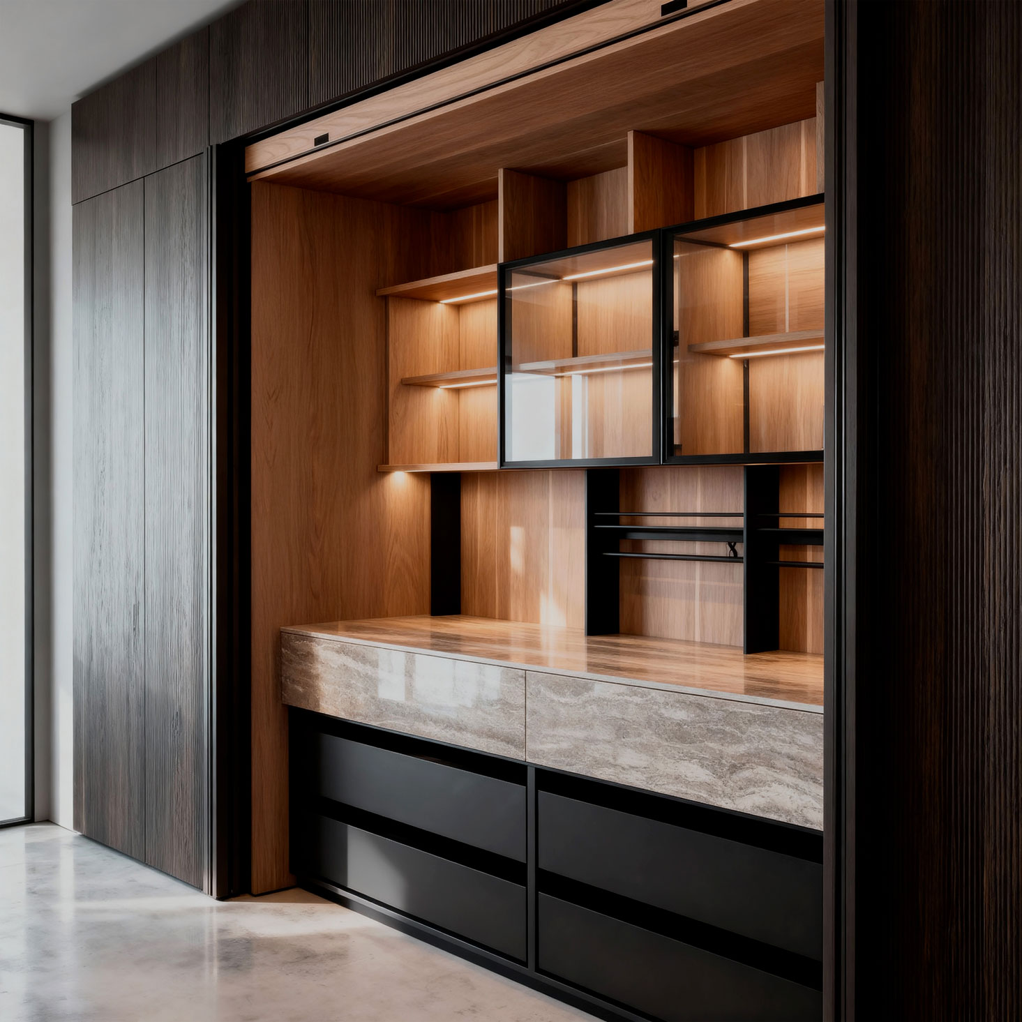 Diseñamos y fabricamos elementos fijos como puertas, closets, muebles empotrados y otros componentes arquitectónicos, combinando precisión técnica, materiales de alta calidad y una estética impecable. La carpintería arquitectónica es más que un complemento: es una parte esencial del diseño interior que define el carácter y la funcionalidad de cada espacio.
